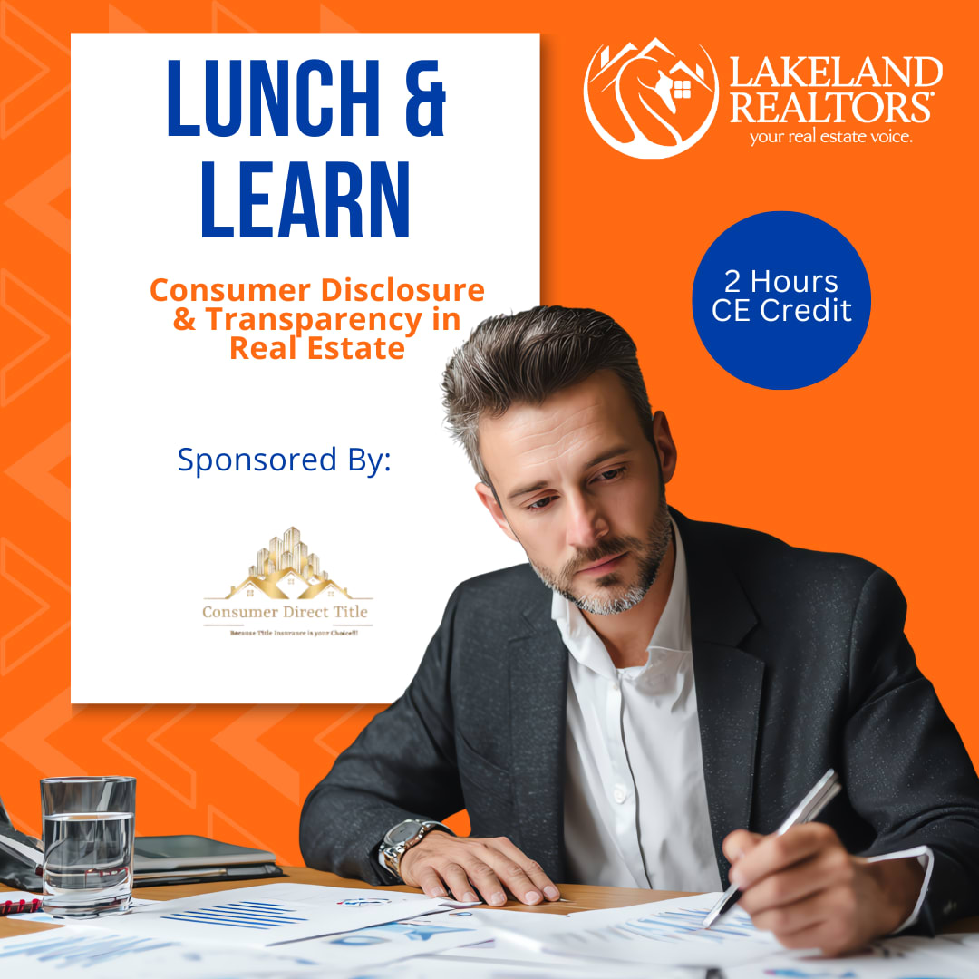 Join us for a 🍴Lunch & Learn🕛 and earn 2 hours of CE credit🎓Lunch & Speaker Sponsored by Consumer Direct Title