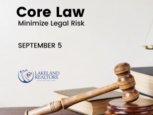 Florida REALTORS® CE Express course "Core Law - Minimize Legal Risk" is being offered in person and is approved for 3-hour Core Law CE Credit.