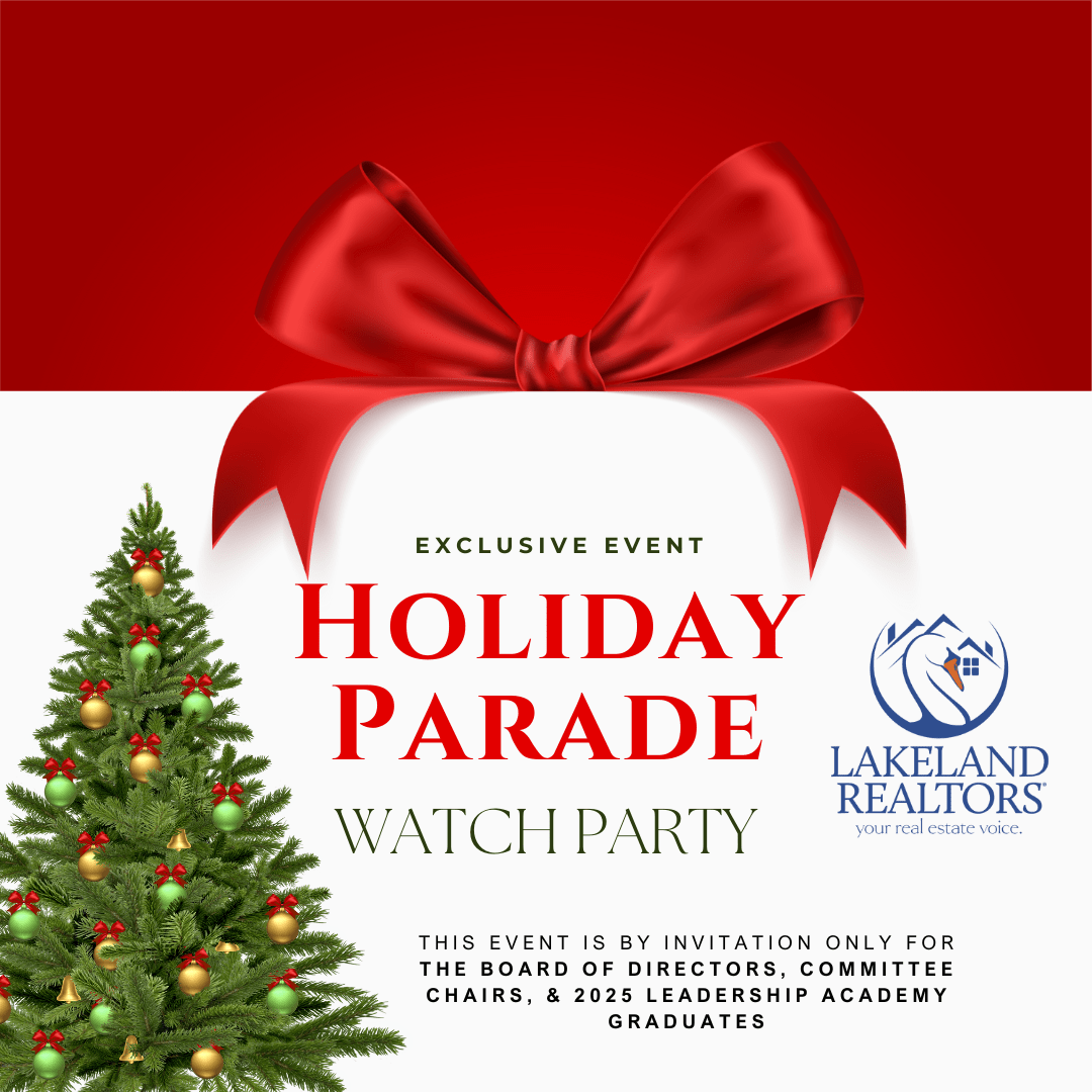 Members of the 2025 Board of Directors, Committee Chairs, and Leadership Academy graduates are invited to join us for an exclusive Parade Watch Party at the Lakeland REALTORS® office.